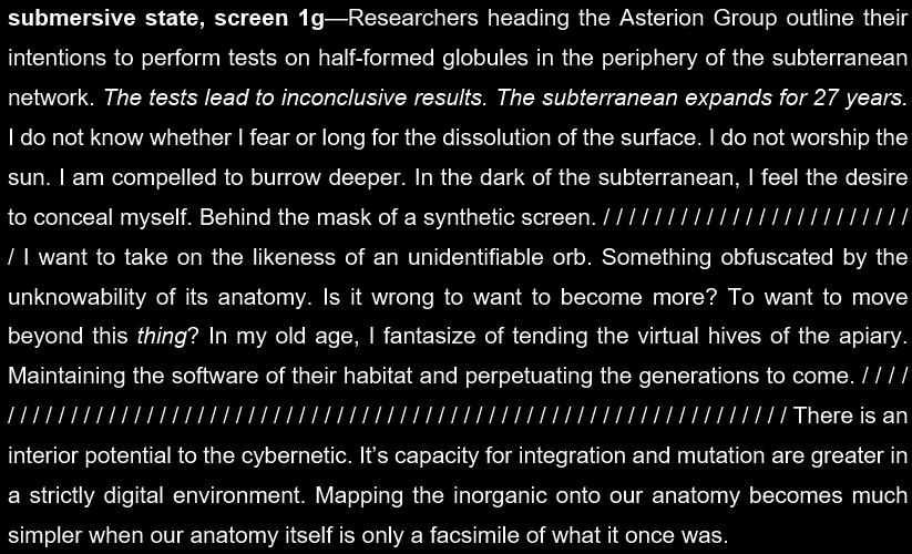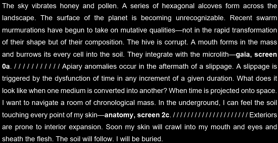 Mike Corrao is the author of two novels, MAN, OH MAN (Orson’s Publishing) and GUT TEXT (11:11 Press); one book of poetry, TWO NOVELS (Orson’s Publishing); two plays, SMUT-MAKER (Inside the Castle) and ANDROMEDUSA (Forthcoming – Plays Inverse); and two chapbooks, AVIAN FUNERAL MARCH (Self-Fuck) and SPELUNKER (Schism – Neuronics). Along with earning multiple Best of the Net nominations, Mikeβs work has been featured in publications such as 3:AM, Collagist, Always Crashing, and The Portland Review. His work often explores the haptic, architectural, and organismal qualities of the text-object. He lives in Minneapolis.