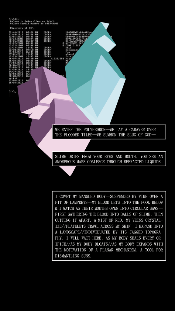Mike Corrao is the author of three novels, Man, Oh Man (Orsonβs Publishing); Gut Text (11:11 Press) and Rituals Performed in the Absence of Ganymede (11:11 Press); one book of poetry, Two Novels (Orsonβs Publishing); two plays, Smut-Maker (Inside the Castle) and Andromedusa (Forthcoming β Plays Inverse); and three chapbooks, Avian Funeral March (SELFFUCK); Material Catalogue (Alienist) and Spelunker (Schism β Neuronics). Along with earning multiple Best of the Net nominations, Mikeβs work has been featured in publications such as 3:AM, Collagist, Always Crashing, and Denver Quarterly. His work often explores the haptic, architectural, and organismal qualities of the text-object. He lives in Minneapolis. @ShmikeShmorrao